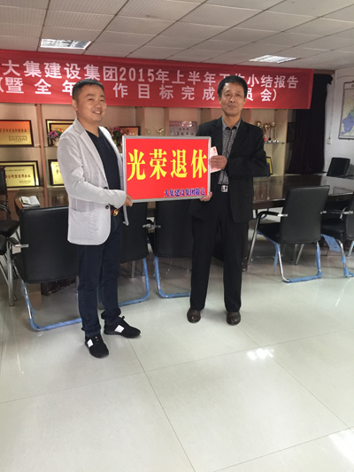 2015年11月2日上午,艷陽高照,湖北大集建設(shè)集團有限公司向退休職工何維祥同志送去關(guān)愛,在歡送儀式上,集團董事長徐濤同志親自為退休職工頒發(fā)了紀(jì)念獎牌和萬元慰問金,并送上了衷心的祝福,徐董說:“感謝老員工多年來為公司做出的貢獻,公司發(fā)展從小到大離不開老職工們打下的堅實基礎(chǔ),公司永遠不會忘記他們?yōu)楣镜钠D辛付出和貢獻。公司將繼承和發(fā)揚他們艱苦創(chuàng)業(yè)、無私奉獻的優(yōu)良傳統(tǒng),努力工作,不斷推動企業(yè)健康、穩(wěn)步向前發(fā)展”。同時徐董還說:“一個企業(yè)不僅要靠豐厚的待遇來激勵員工,更要靠濃厚的企業(yè)文化來凝聚員工,老職工退休舉行“退休”儀式,可以讓年輕員工感受到,只要我們努力學(xué)習(xí),愛崗敬業(yè)、為企業(yè)作出貢獻,企業(yè)就永遠不會忘記他們”。