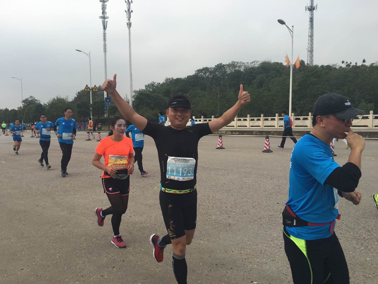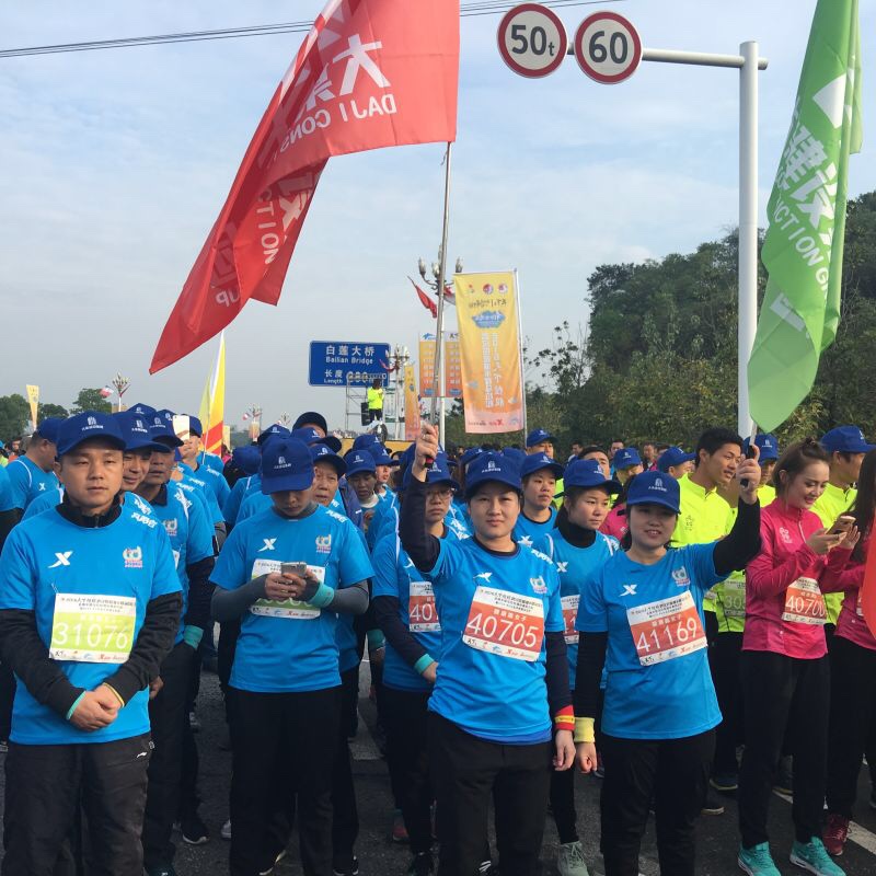 雖然下了一周的雨而且此天氣將會持續(xù)幾天,可是仍然阻擋不了大家參賽的勁頭和熱情,天不亮就早早起床直赴公司大院集合整裝待發(fā),所有參賽人員到齊后乘坐巴士前往比賽主會場提前進(jìn)行拉伸運動。我們到達(dá)目的地時天還剛蒙蒙亮,氣溫也很低,但是已經(jīng)聚集了不少參賽人員及后勤保障、治安人員,個個精神抖擻、容光煥發(fā),都期待著順利地跑出好成績!