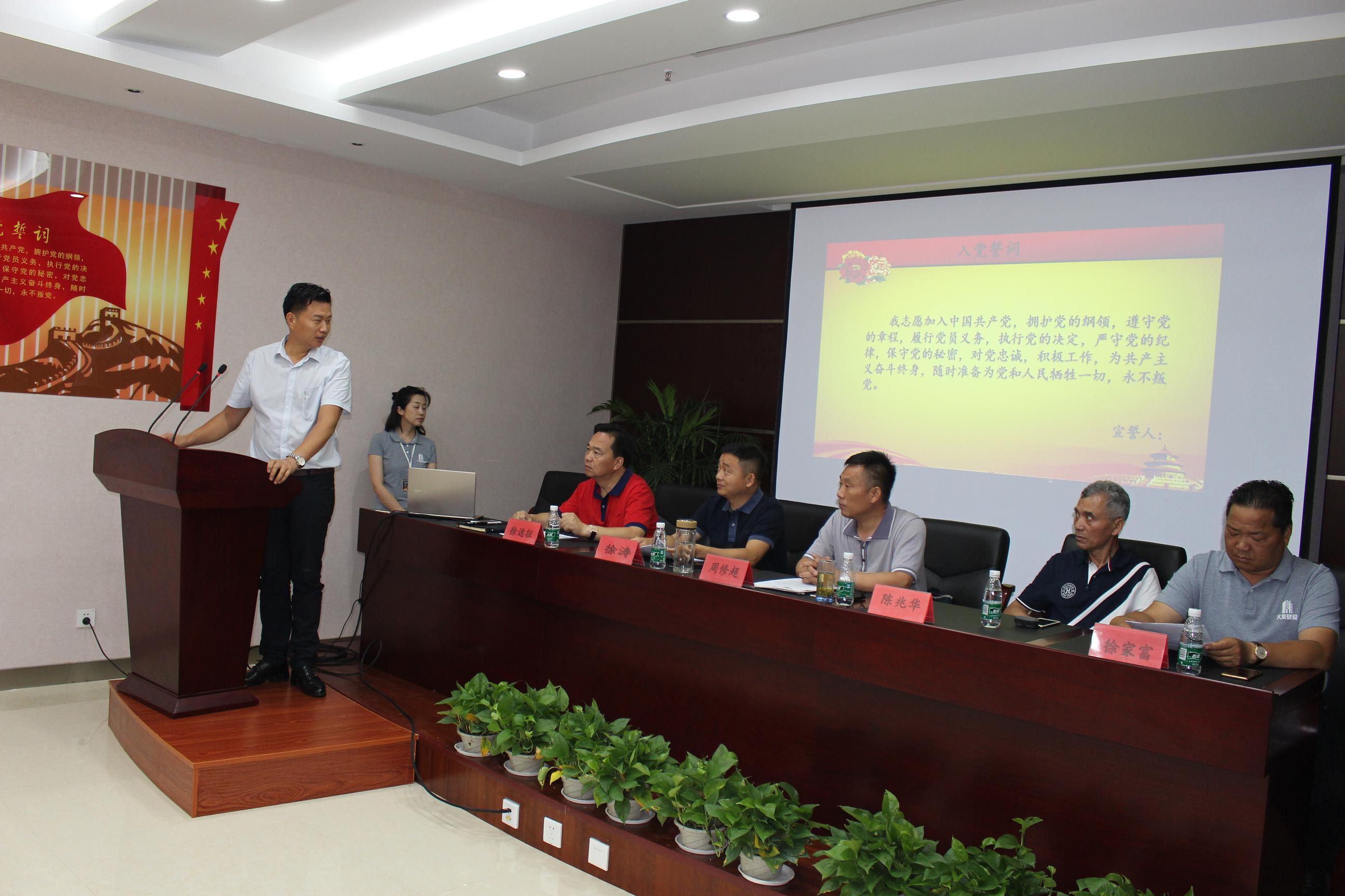 在慷慨激昂的大合唱《沒有共產(chǎn)黨就沒有新中國》中,會議拉開了序幕,熱血沸騰的歌聲結(jié)束后,由集團黨委副書記徐遠征同志帶領(lǐng)新黨員做入黨宣誓,老黨員重溫入黨誓詞。
