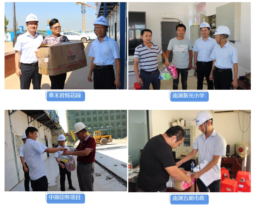 為切實(shí)做好夏季施工現(xiàn)場(chǎng)防暑降溫工作,7月19日,集團(tuán)公司開展一線慰問(wèn)送清涼活動(dòng),前往各項(xiàng)目部發(fā)放毛巾、風(fēng)油精、人丹、十滴水等防暑降溫物資,同時(shí)要求各項(xiàng)目負(fù)責(zé)人要從以人為本、安全生產(chǎn)的高度,做好高溫防暑措施,合理安排好夏季高溫作業(yè)時(shí)間,確保項(xiàng)目一線員工安度酷暑。