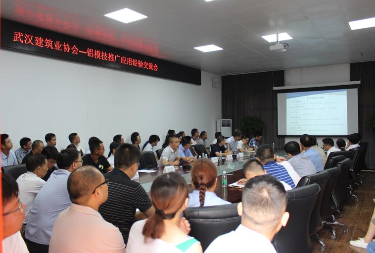 現(xiàn)場觀摩結束后,大家前往項目會議室進行座談交流。交流會上,武漢建工集團從鋁模技術的十大優(yōu)勢、與傳統(tǒng)工藝的成本對比、武漢建工在鋁模使用及推廣上的案例三個方面淺談了鋁模在高層住宅結構施工中的運用實踐,中天建設集團則從鋁模的深化設計、鋁模對質量提供的優(yōu)勢、鋁模運作流程以及竣工后鋁模的回收利用等方面講解了鋁合金模板體系施工應用。隨后,武漢志華天禾鋁模科技有限公司和碧桂園集團筑夢公司分別向大家介紹了鋁合金模板體系及行業(yè)發(fā)展前景、SSGF高質量建造體系。在質量工作委員會專家及各位企業(yè)代表交流發(fā)言后,武漢建筑業(yè)協(xié)會副會長兼秘書長李淼磊發(fā)表講話,李淼磊表示此次現(xiàn)場觀摩和座談交流,有效擴大了行業(yè)內、企業(yè)間質量技術交流渠道,增強了行業(yè)嚴抓工程質量、努力打造優(yōu)質精品工程的自覺性。