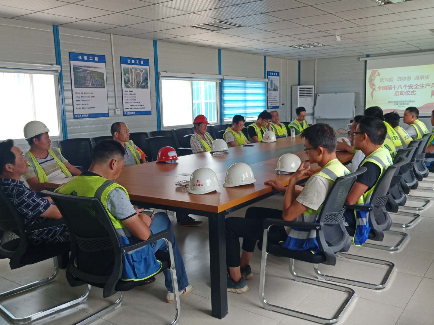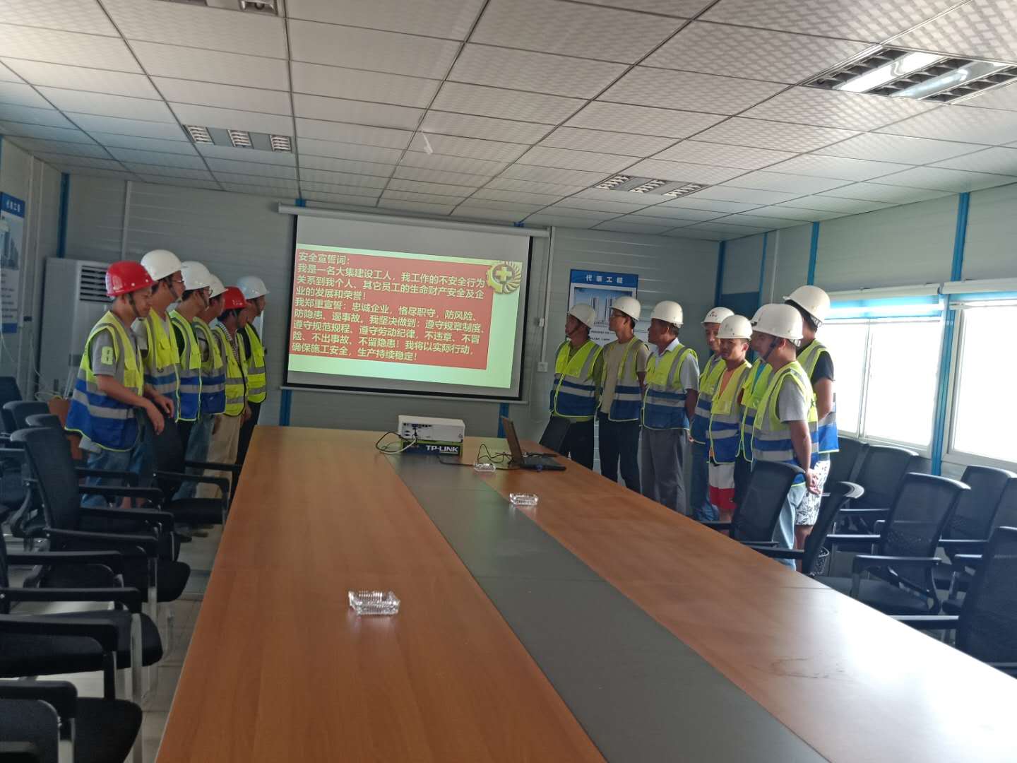 啟動儀式上,生產經理陳超首先向大家講解了防范化解重大風險,及時消除安全隱患,有效遏制生產安全事故的重要性,并著重強調了夏季高溫防中暑的各項安全措施、夜間施工現(xiàn)場照明及檢查監(jiān)督事項。隨后,組織了全體人員進行安全月活動的宣誓。通過集體安全宣誓,進一步推動了現(xiàn)場施工人員由“要我安全”為“我要安全”觀念的轉變,現(xiàn)場施工人員也紛紛表態(tài)要堅守安全生產這條紅線,確保工程項目順利安全推進。