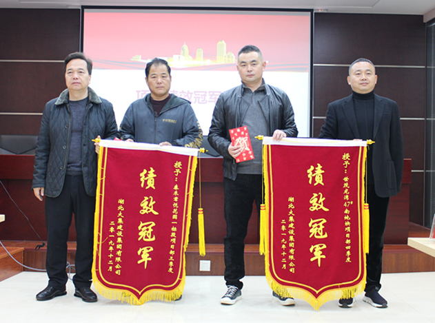 會(huì)議開(kāi)始,行政部公布集團(tuán)公司2019年第三四季度項(xiàng)目績(jī)效考核結(jié)果,并由集團(tuán)董事長(zhǎng)徐濤、總經(jīng)理徐遠(yuǎn)征為第三四季度項(xiàng)目績(jī)效冠軍頒發(fā)錦旗和獎(jiǎng)金。