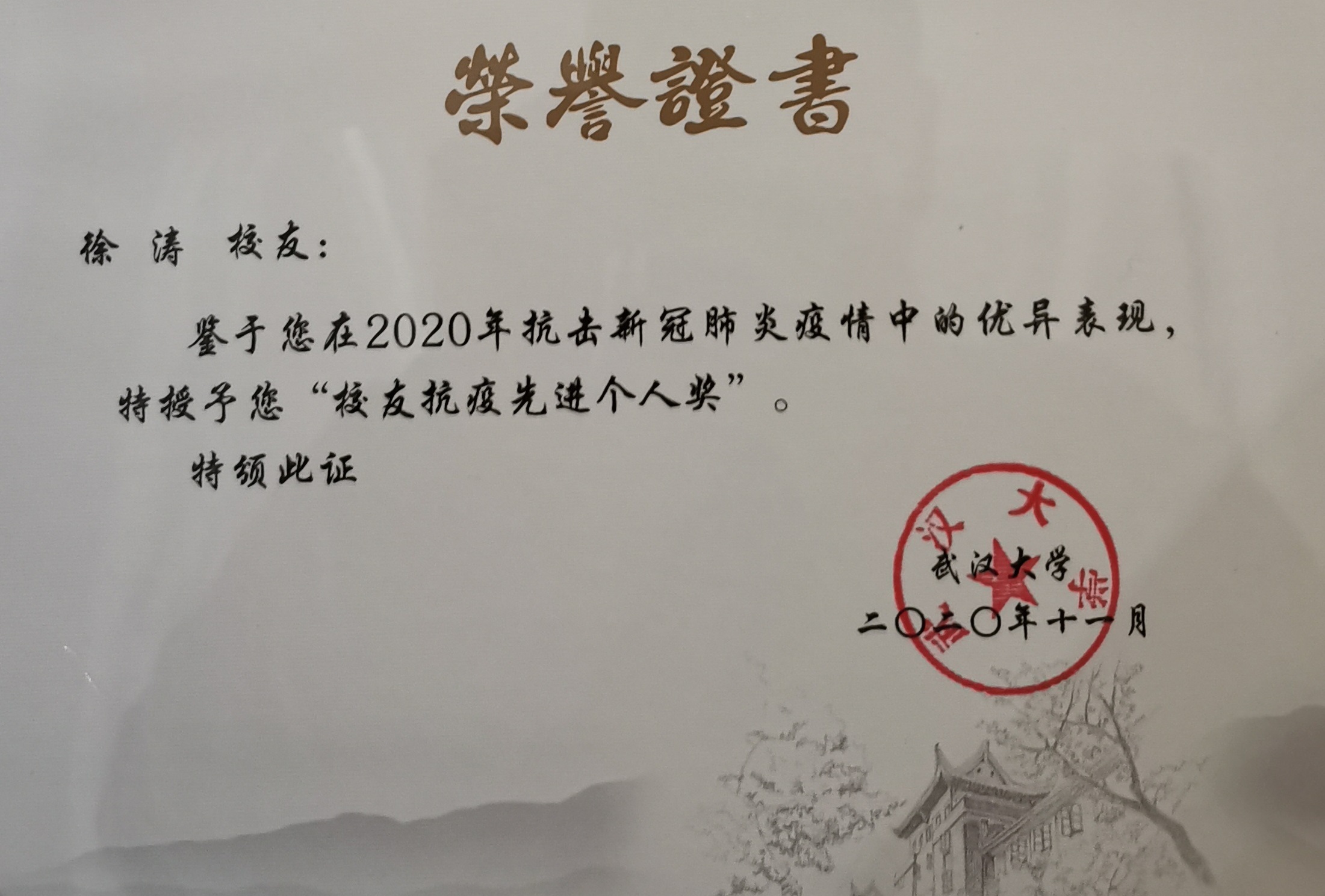 武漢大學(xué)“校友抗疫先進(jìn)個人”表彰