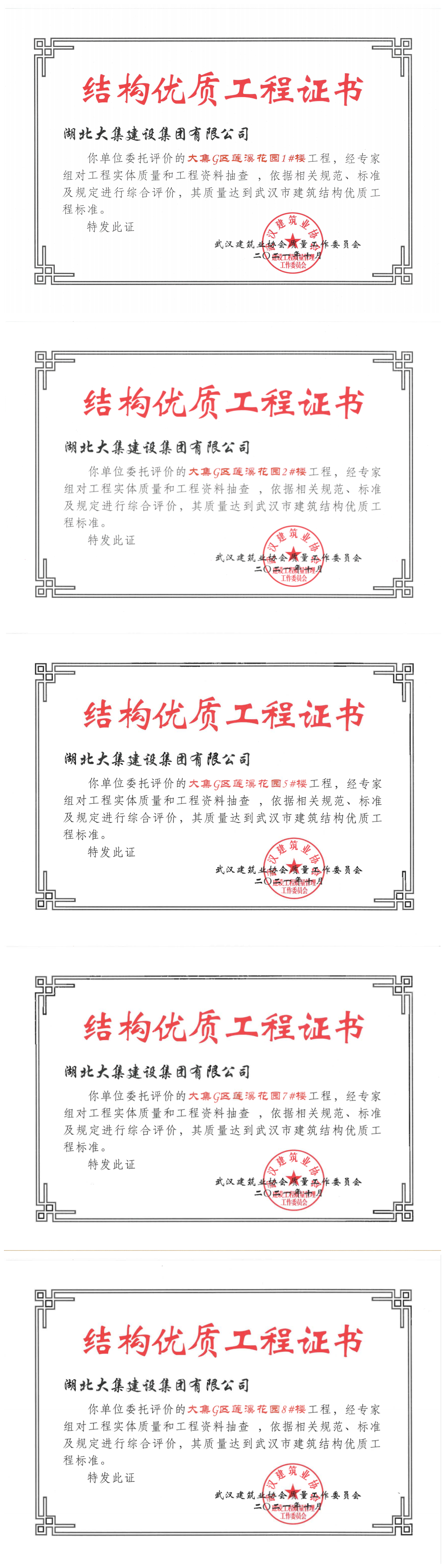近日,由湖北大集建設(shè)集團(tuán)承建的大集G區(qū)蓮溪花園項(xiàng)目1#、2#、5#、7#、8#樓榮獲“武漢市建筑結(jié)構(gòu)優(yōu)質(zhì)工程”榮譽(yù)。