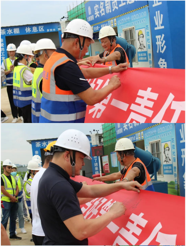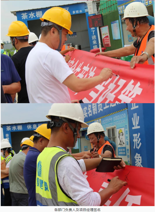 活動開始,集團(tuán)董事長徐濤、副總經(jīng)理徐家富及各部門負(fù)責(zé)人、各項目經(jīng)理率先在“遵守安全生產(chǎn)法,當(dāng)好第一責(zé)任人”條幅上鄭重簽名,寫下對肩負(fù)安全生產(chǎn)責(zé)任的承諾,隨后各項目施工員、安全員紛紛在條幅上寫下自己的名字,表達(dá)對做好安全生產(chǎn)相關(guān)工作的信心和決心。