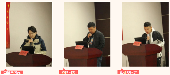大會第一項議程,討論并確定發(fā)展對象和入黨積極分子。大會嚴格按照黨員發(fā)展流程,入黨申請人李晨樂同志、袁剛同志匯報了入黨動機、對黨的認識,入黨積極分子山建華同志宣讀了《入黨志愿書》,匯報了其在工作學習方面的表現(xiàn)。隨后,經(jīng)過支部黨員們研究討論、投票表決,最終確定山建華同志為發(fā)展對象,李晨樂、袁剛兩名同志為入黨積極分子。