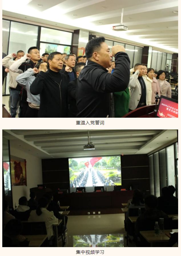 會議第二項議程,召開了4月份支部主題黨日活動。會議上,全體黨員起立奏唱國歌,并重溫入黨誓詞。集團黨支部書記宣讀了中共蔡甸區(qū)委組織部《2023年4月份黨支部主題日重點學習內(nèi)容》后,大家集中視頻學習了《如何推進國家安全體系和能力現(xiàn)代化》內(nèi)容。