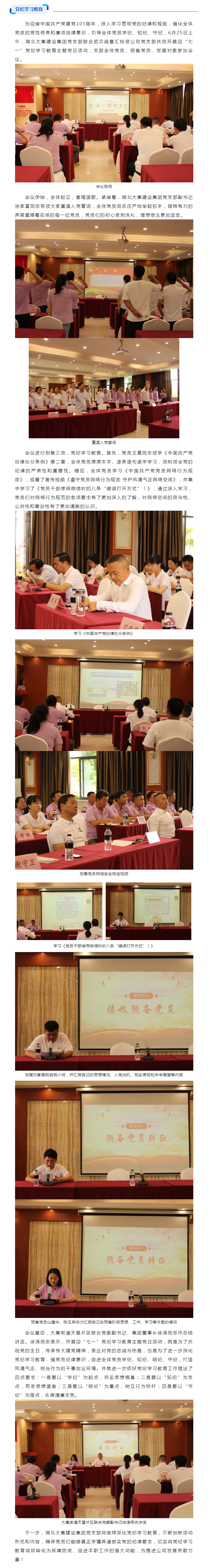 學(xué)黨紀(jì) 明規(guī)矩 守初心 促發(fā)展——湖北大集建設(shè)集團(tuán)開(kāi)展迎“七一”黨紀(jì)學(xué)習(xí)教育主題黨日活動(dòng)