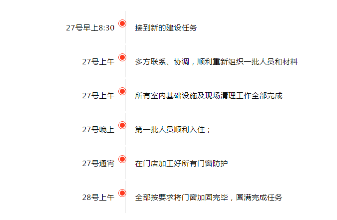 本批任務(wù)時(shí)間更緊,挑戰(zhàn)更大,因?yàn)楫?dāng)天晚上,第一批使用人員便要入住方艙,這意味著,留給我們的施工時(shí)間只有僅僅不到一天!