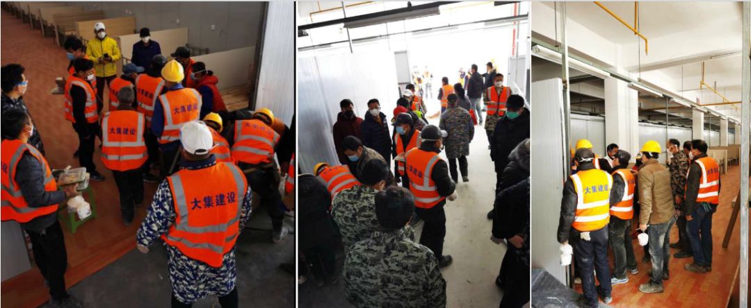 2月15日一早,在接到承建方艙醫(yī)院的緊急任務(wù)后,董事長(zhǎng)徐濤火急召集全體項(xiàng)目經(jīng)理部署改建工作,進(jìn)行現(xiàn)場(chǎng)勘測(cè)。由于本次任務(wù)很重,改造現(xiàn)場(chǎng)主要集中在3-5樓,包括護(hù)士站及病房共計(jì)12000多平,1600個(gè)床位,以及隔斷墻、廁所及配套設(shè)施。