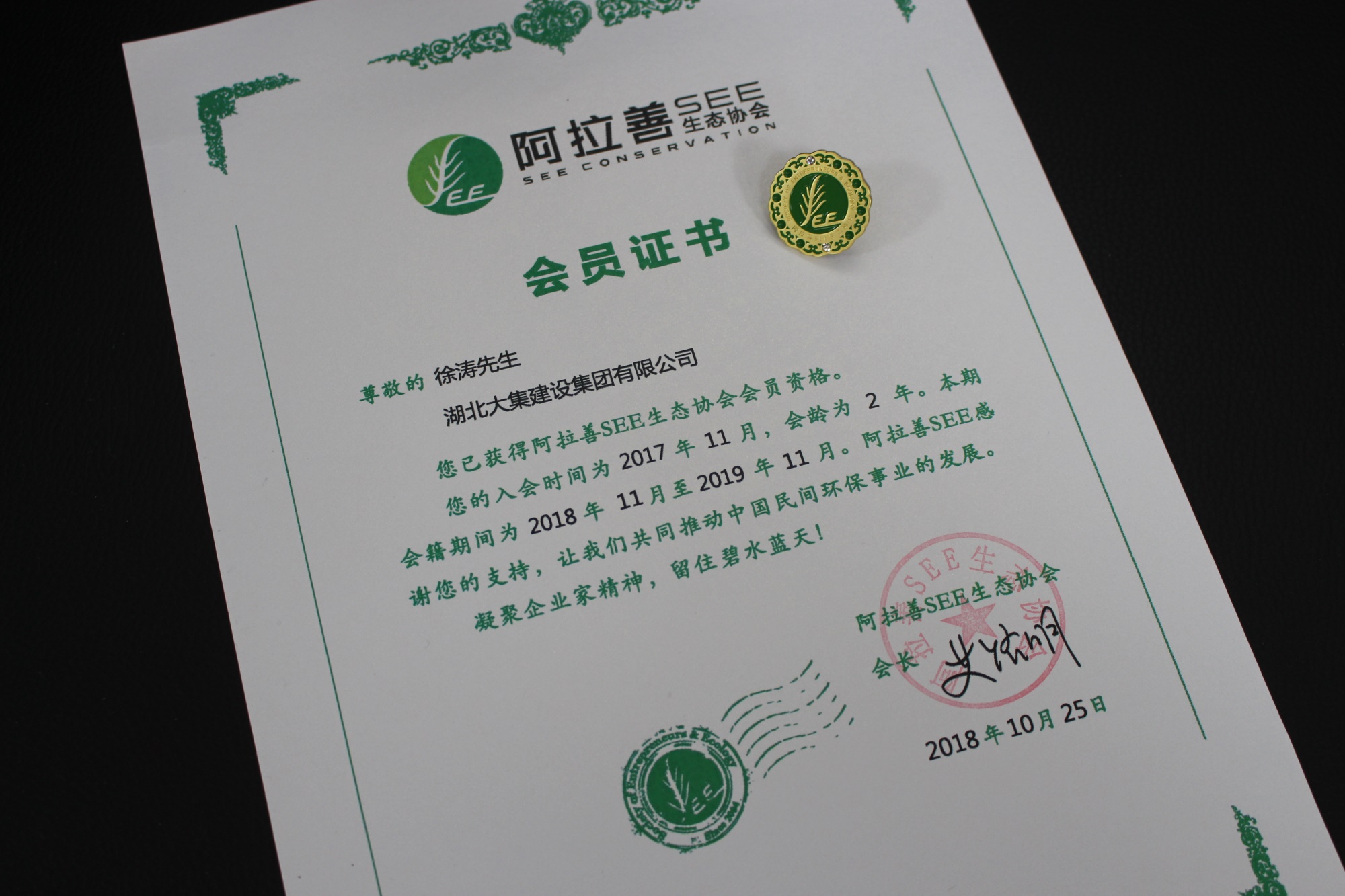 2017年11月,集團(tuán)董事長徐濤攜湖北大集建設(shè)集團(tuán)正式加入中國最具影響力的環(huán)境保護(hù)公益組織——阿拉善SEE生態(tài)協(xié)會,正式成為阿拉善SEE會員。到如今,集團(tuán)加入阿拉善SEE生態(tài)協(xié)會已經(jīng)第二個年頭了。